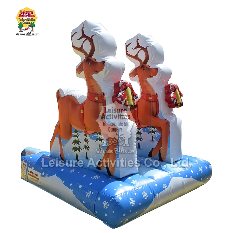 Spre deosebire de toate produsele competitive și recreative anterioare, poziționarea de bază a selfie-ului gonflabil cu sania cu reni este un dispozitiv de fotografiere și 打卡 pentru festivalul de Crăciun. Designul se concentrează pe sania și renii clasici de Crăciun al lui Moș Crăciun, combinate cu culori luminoase, exclusiviste pentru Crăciun. Designul este rafinat și realist. Fără o configurație suplimentară, poate transforma rapid locul într-un tărâm magic de iarnă plin de magie. Designul echipamentului ia în considerare atât caracterul practic, cât și atractivitatea vizuală. Forma spațioasă a saniei permite copiilor și adulților să stea confortabil pentru fotografii, surprinzând cu ușurință amintiri calde și de neuitat de Crăciun. Poate servi ca punct culminant pentru decorarea sărbătorilor, sporește interactivitatea evenimentului și atrage oamenii să se oprească și să participe.