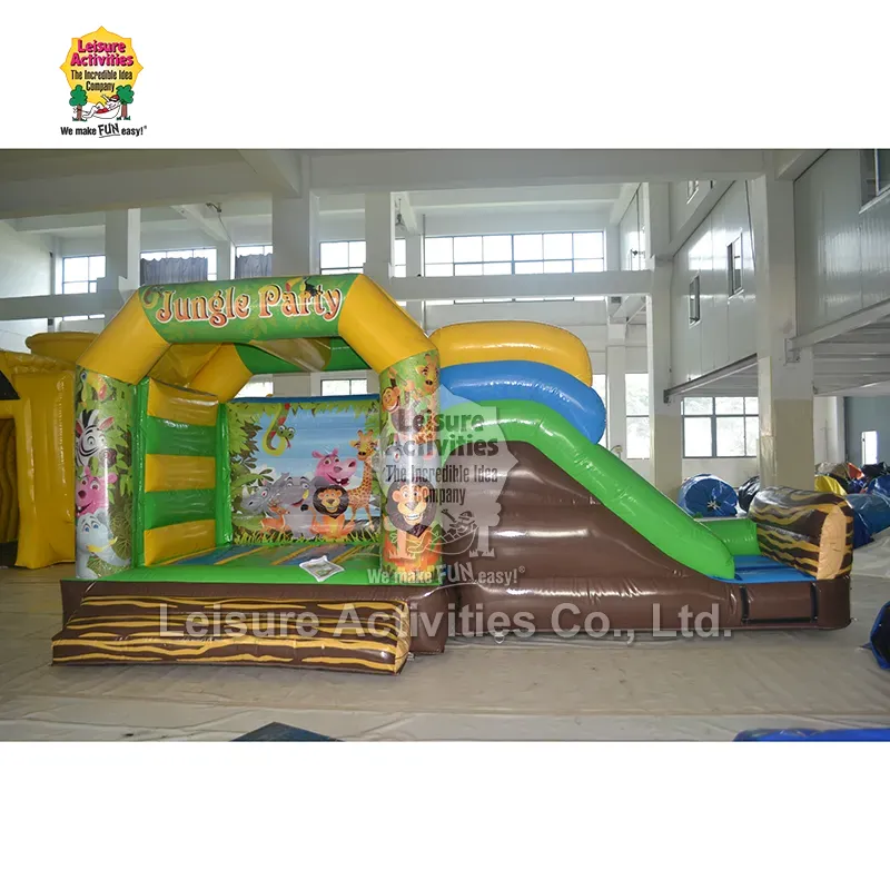 Leisure Activities are propria fabrică și este producătorul și furnizorul de petrecere din junglă cu tobogan pentru castele gonflabile multiplayer mici. Acest castel gonflabil oferă o varietate de distracție, inclusiv sărituri, cățărare și alunecare și este potrivit pentru copiii cu vârsta cuprinsă între 3 și 10 ani.